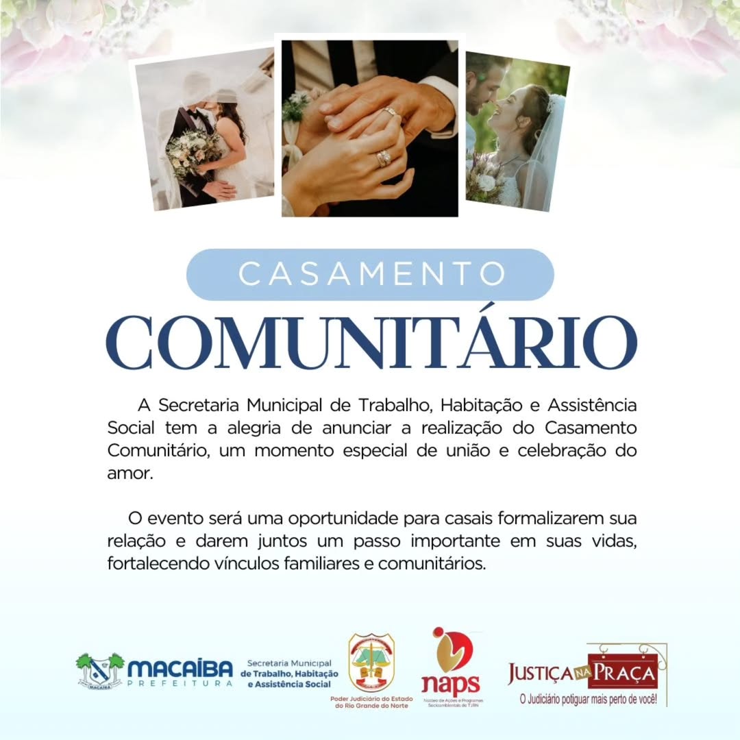 inscrições para o Casamento Comunitário 2025, que será realizado no dia 23 de